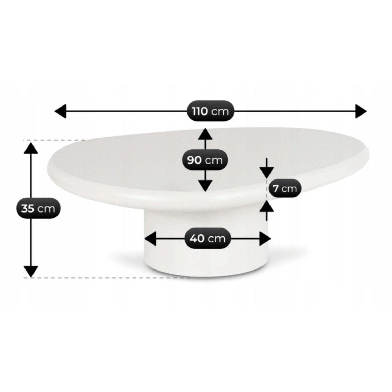 - Практична стільниця: закруглена стільниця має довжину 110 см та ширину 90 см, що робить її привабливою та зручною для повсякденного використання.