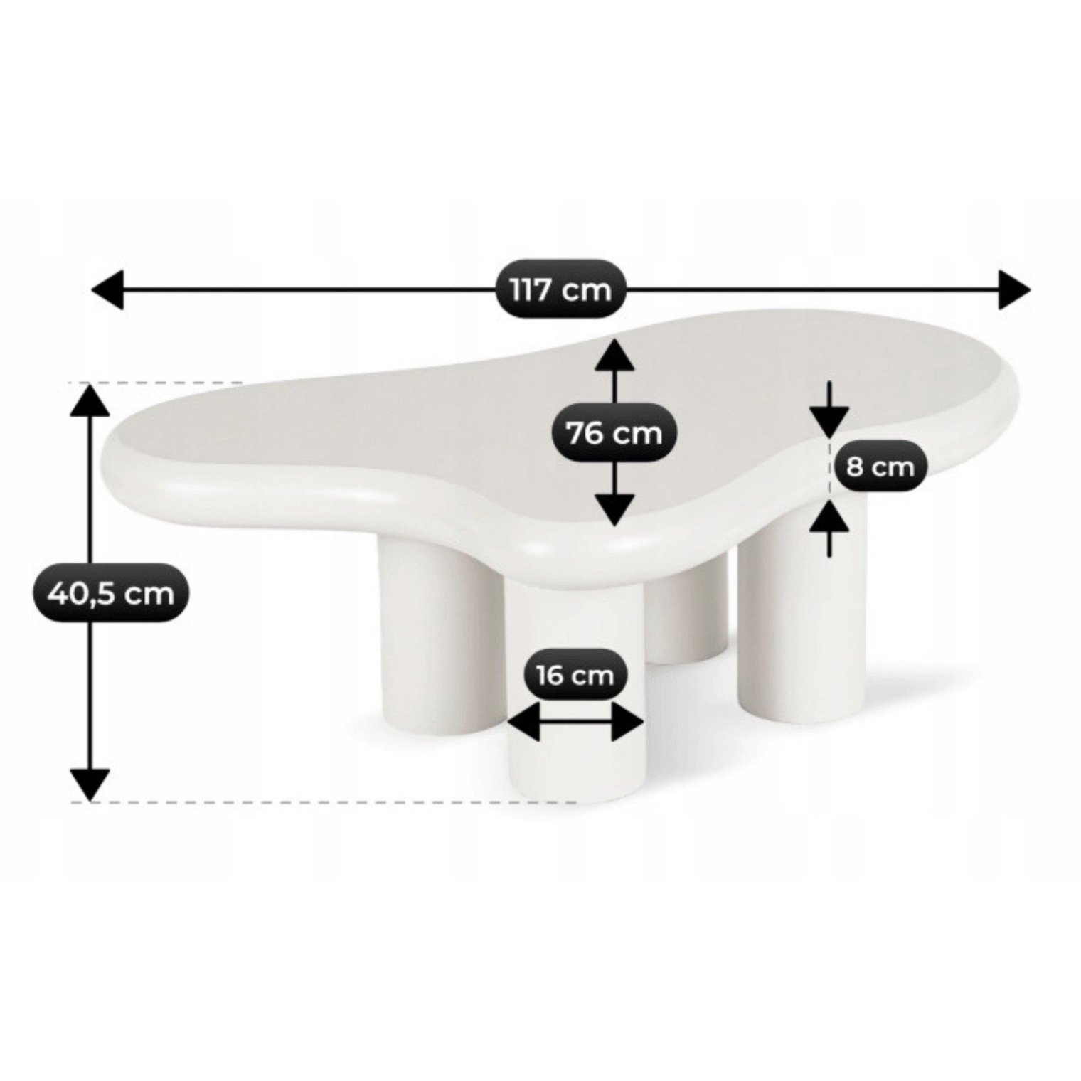 - Функціональна стільниця: унікальна форма стільниці, довжиною 117 см та довжиною 76 см, не тільки привертає увагу, а й підвищує комфорт у повсякденному використанні.
